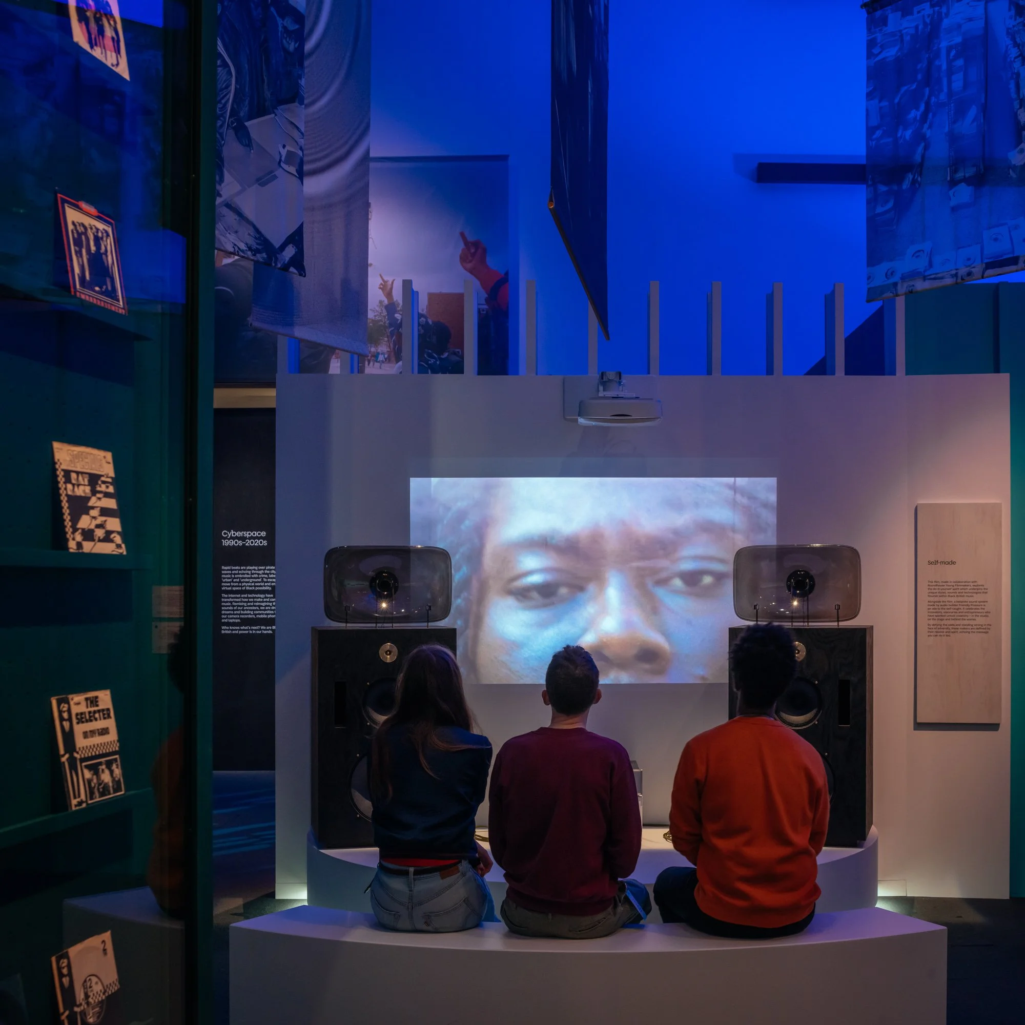 A core ambition of the exhibition is to engage with Black British communities and to create an inclusive exhibition that invites new audiences to cross the threshold into the Library. Alongside a soundscape designed by sound designers, Coda 2 Coda that spans the exhibition and weaves through the distinct time periods, the exhibition features several spatial interruptions, moments of pause and reflection, that celebrate community commissions exploring pertinent themes such as dance, resistance, faith and ‘self-made’. These community commissions were integrated within the exhibition design and include new soundscapes, artworks, films and installations that explore Black British identity through the medium of music.