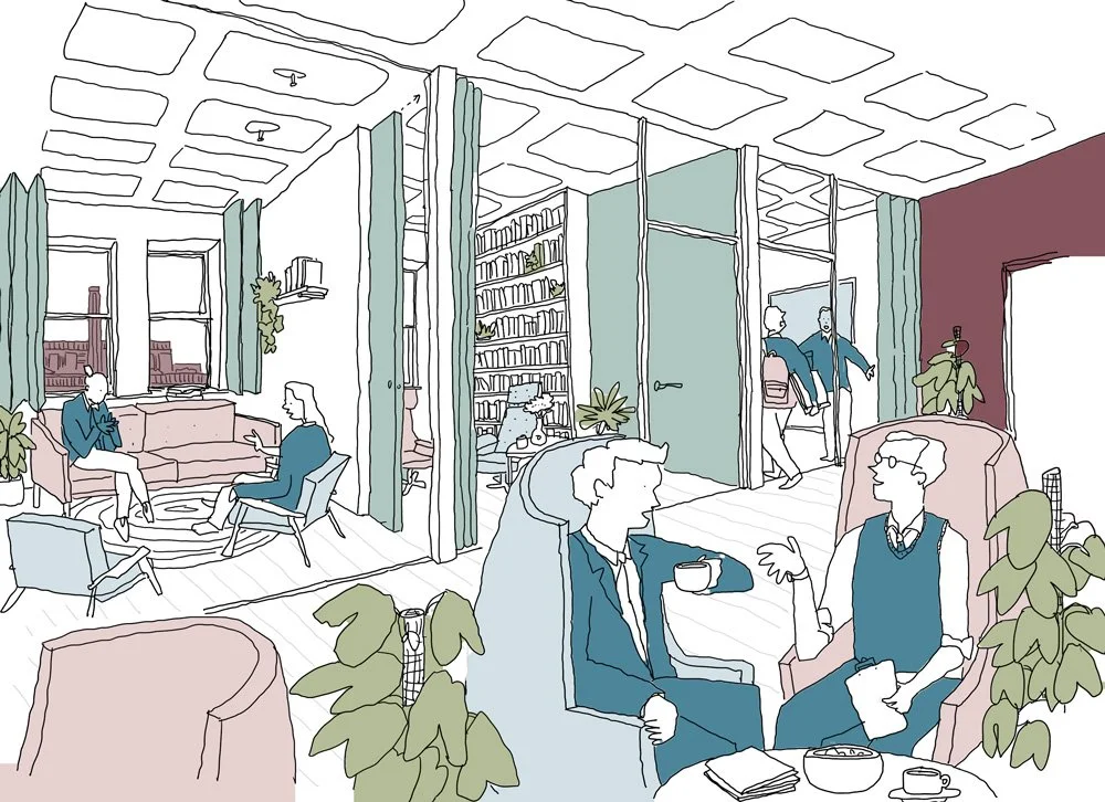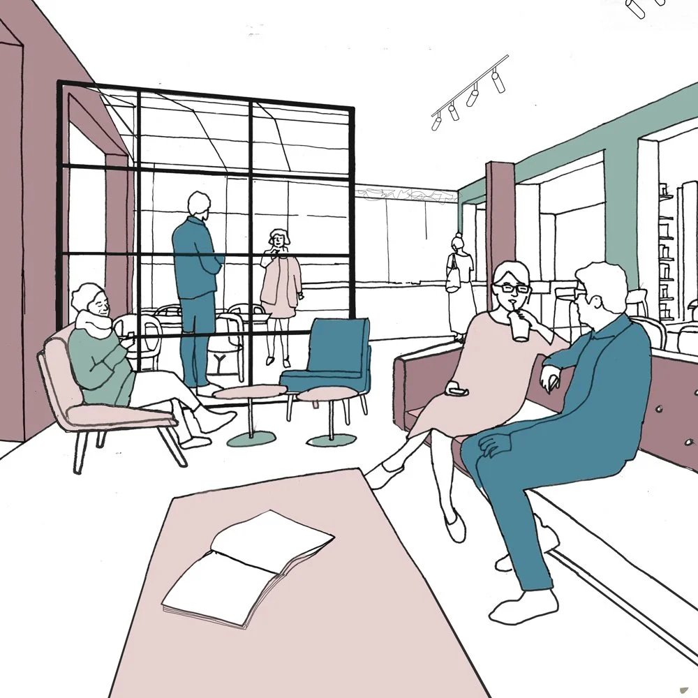 Competition visualisation showcasing the new extension and enhancements to the courtyard.