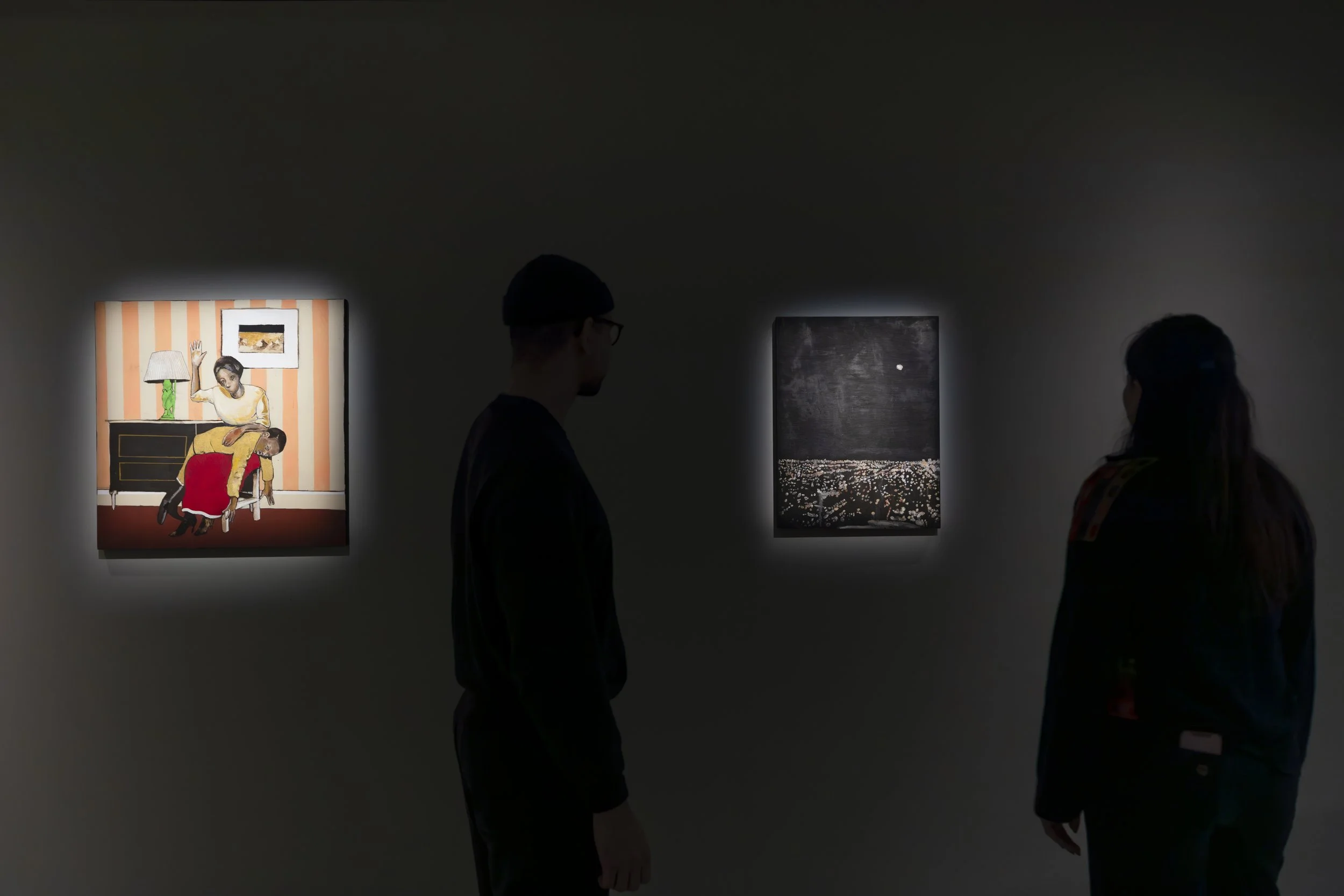 Known for his distinctive approach to painting, Davis’ work combines elements of representation and abstraction, drawing from both historical and contemporary influences to depict everyday Black life in a manner that transcends specific periods of time. As an exhibition featuring predominately Davis' paintings, our design approach was an exercise in restraint, giving space to his voice, using materials sparingly alluding to the DIY ethos of the Underground Museum, and subtle shifts in colour and light to help create an intimate relationship between artwork and audience.
