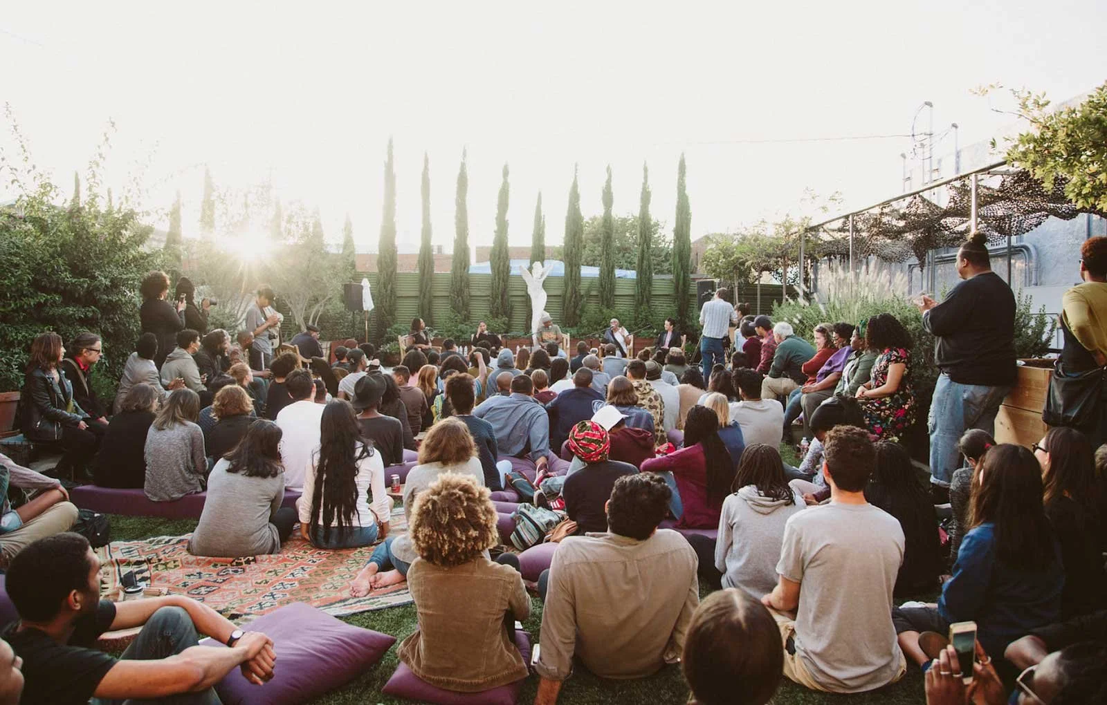 The exhibition design takes on an atmosphere that embodies Davis’s own community driven ethos. Envisaged to be an open and generous exhibition, with long sightlines and spaces for dwell, the use of a translucent gauze framework that forms many of the new partitions echo the shifting light and open skies of Los Angeles, where Davis lived and worked.