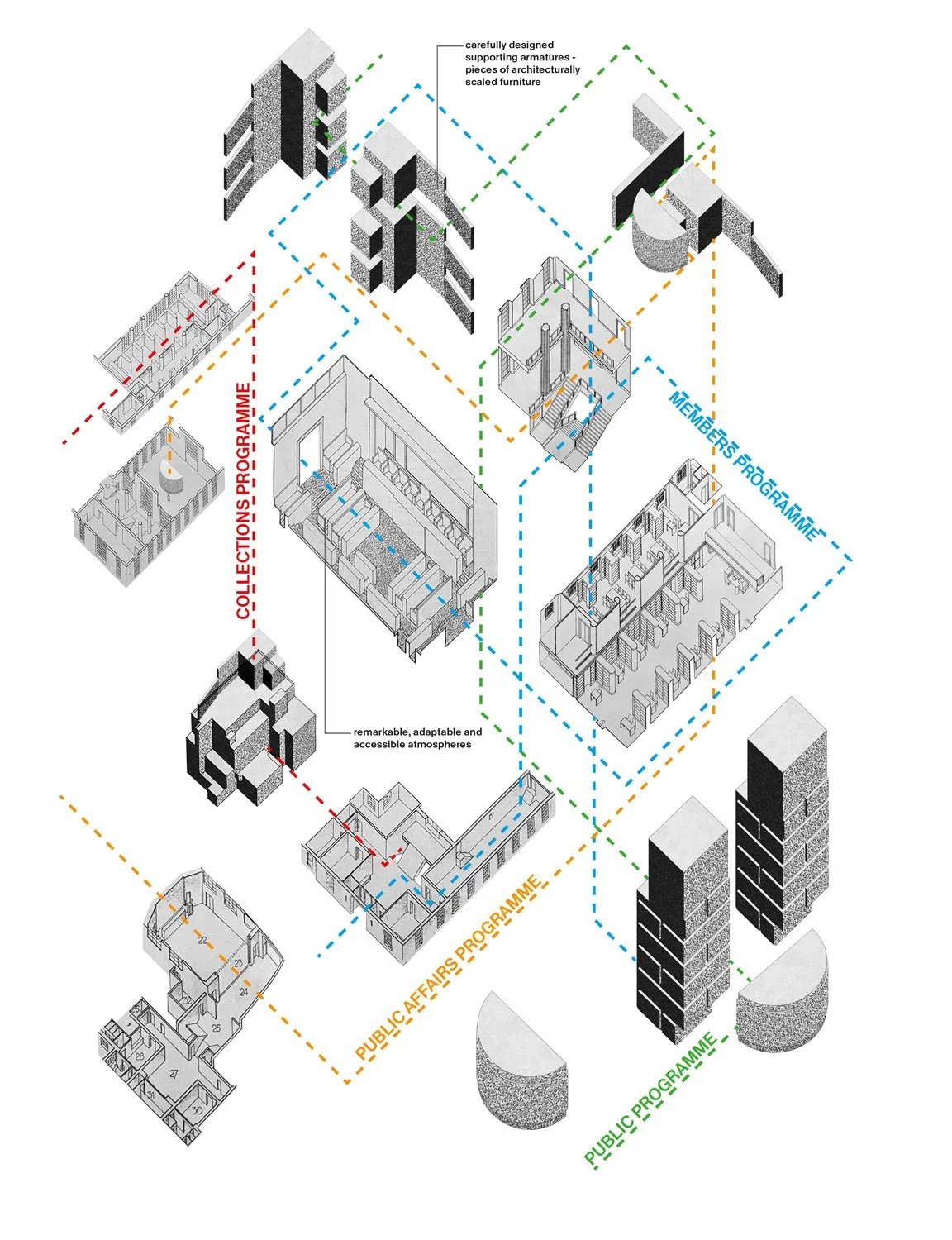 The RIBA’s motto translates from Latin as “For the use of the people and the glory of the city”. By stripping back, challenging and making visible the material and narrative layers of 66 Portland Place, we sort to enshrine these values, in our designs to create honest, embracing spaces fit for our now and prepared for the challenges of the future.