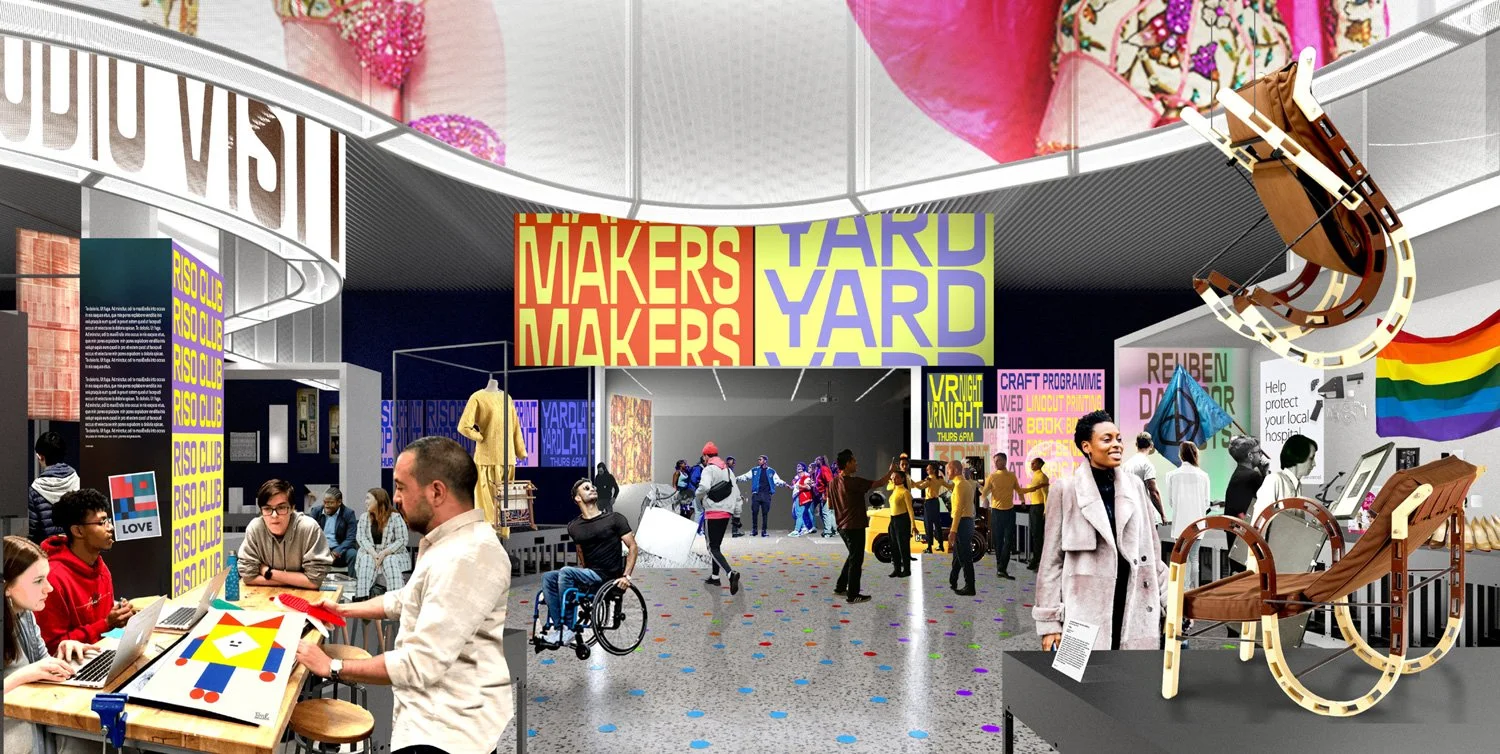 A collaboration team comprising of Freehaus, IDK and Studio Bergini were shortlisted to provide the 3D and 2D design services for V&A East Museum Galleries. The competition was centred around the design of the ‘Why We Make’ galleries, which will be located across two floors of the V&A East Museum. The two floors were to be sub-divided into thematic zones that juxtapose diverse practitioners and objects around shared themes and agendas, whilst collectively celebrating the transformative power of making in the face of the major issues of our time and exploring the narrative of ‘Why We Make’.